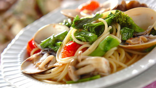 グルテンフリーパスタおすすめレシピ-菜の花とあさりの本格スープパスタ今日のレシピビーフンのケンミン食品。