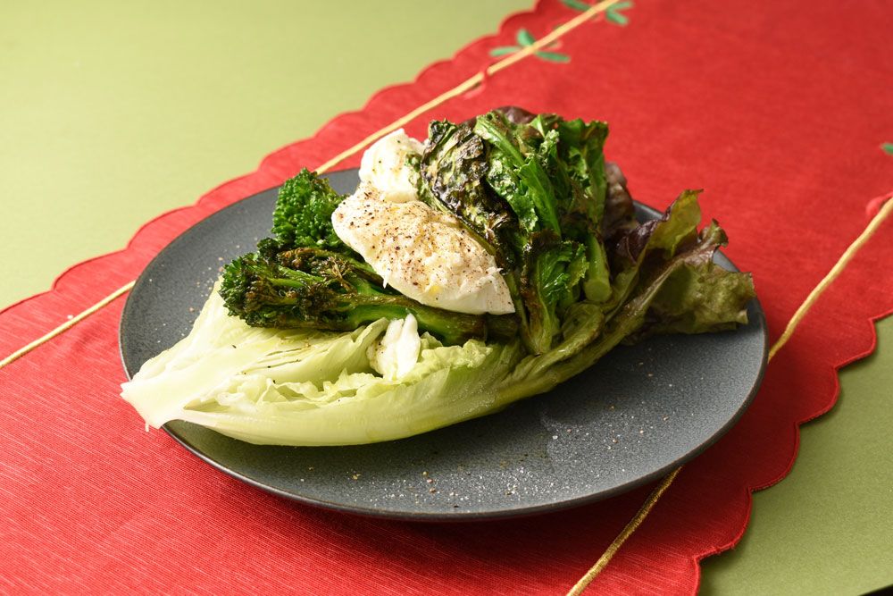 キャベツとモッツァレラチーズのオリーブ焼き。