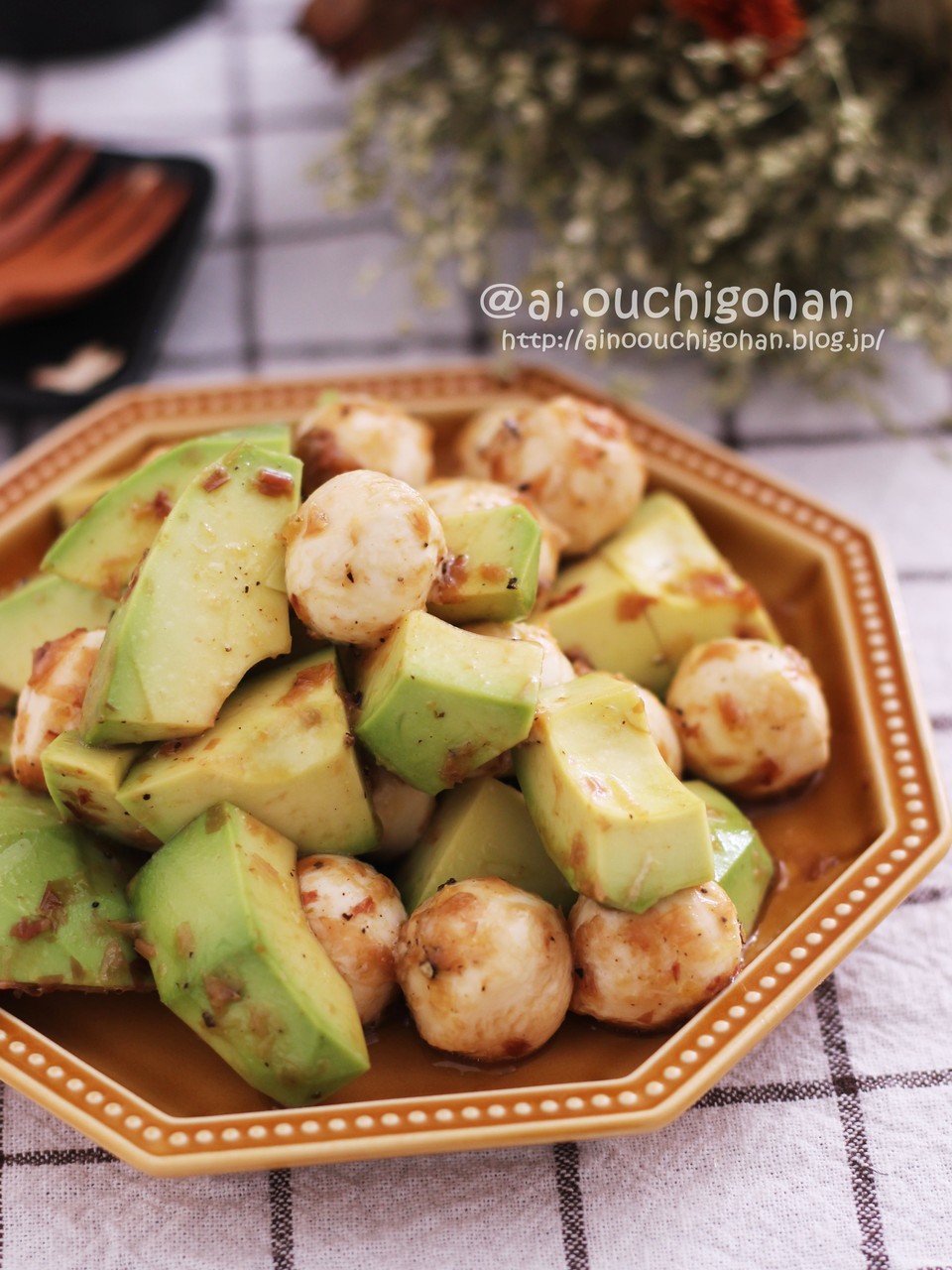 ジタクメシ> タコとアボカドとモッツァレラチーズの柚子胡椒マリネ。 めちゃくちゃ簡単なのでレシピ共有。 ボイルのタコ 150gくらい? アボカド 2個モッツァレラチーズ 100gくらい オリーブオイル 大さじ1 柚子胡椒 小さじ2 酢 私は白ワインビネガー使いました大さじ1。