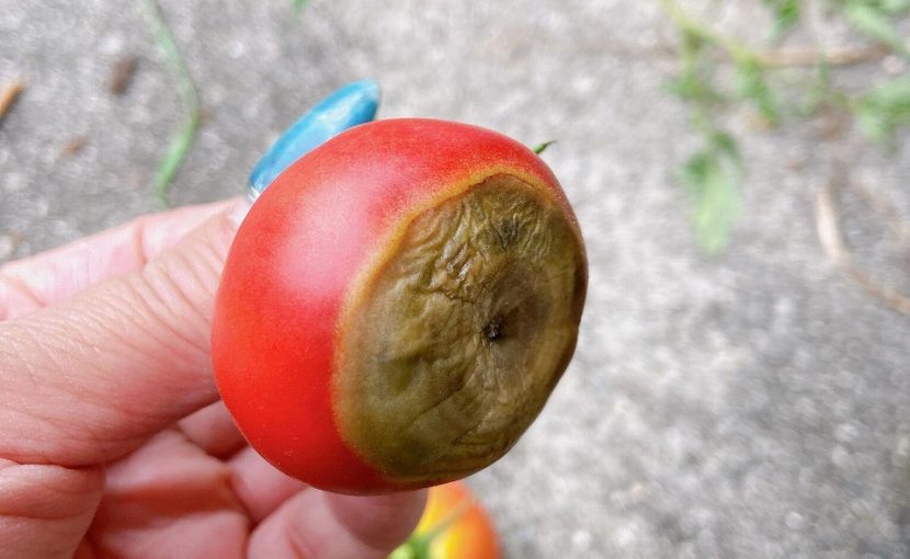 トマト実の一部が黒くなる尻腐れカルシウム欠乏ミライ菜園。