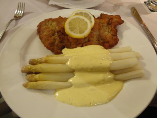 シーズンだけにスパーゲルに豚肉のシュニッツェルを添えたものを注文。 - Picture of Ratskeller, Trier -Tripadvisor。