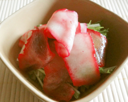 鯨ベーコンサラダの醤油ゴマドレがけ。