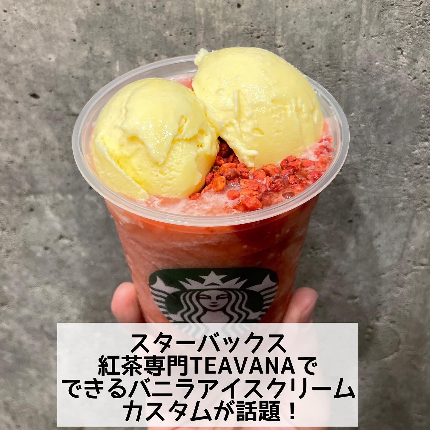 りょうくんグルメ على X: "世の中にはまだあまり知られてないがスタバの紅茶専門店teavanaでは好きなドリンクにバニラアイスクリームがトッピングできるぞ。全国に5店舗、東京は吉祥寺と六本木。 まじでアイス乗せるとリッチ感UPして最高だからぜひ試してきて。 アイス2。