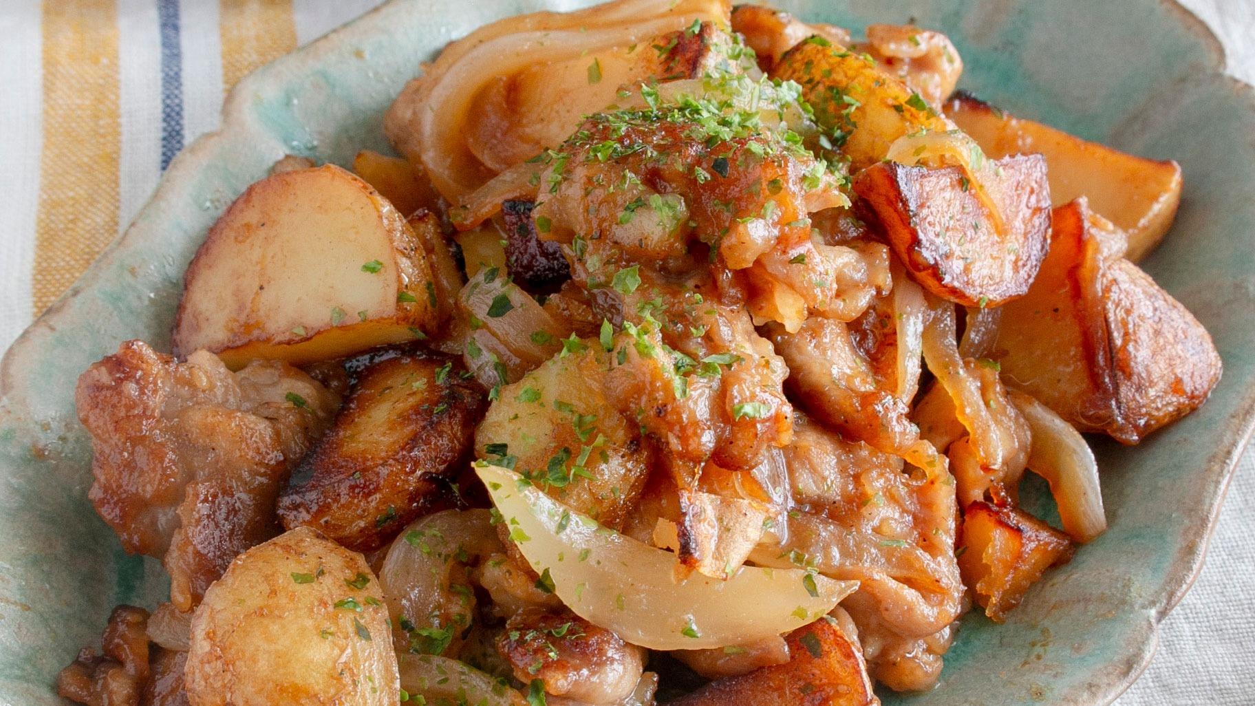 しっとりジューシー! 鶏むね肉と玉ねぎの甘酢炒め煮。