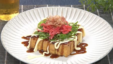 超簡単おつまみ ビールが進む!お好み焼き風厚揚げの作り方♪香ばしい香りがお酒との相性抜群です。