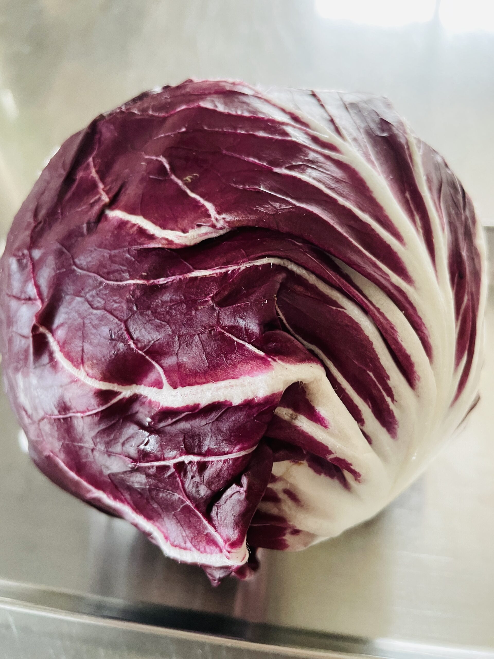 トレビスが入荷しています イタリア原産の『トレビス』。紫キャベツに似ていますが、トレビスは軸や葉脈の部分が白いので、コントラストがはっきりとして、見た目がとても綺麗なお野菜です😊独特の苦みが特徴のお野菜なので、どちらかというと大人の方向けかもしれません。
