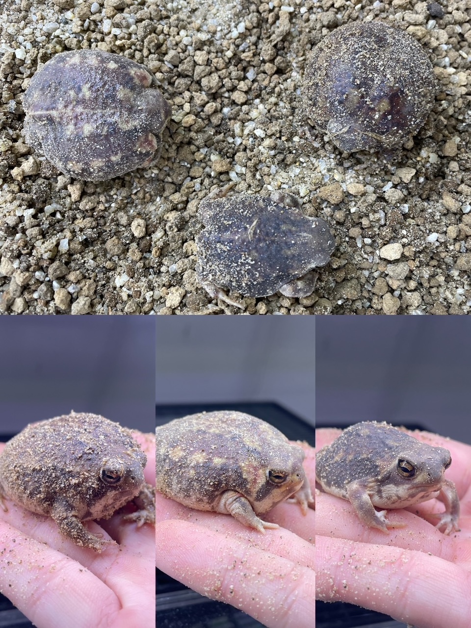こんにちは。, わらびもちです。, 今日はお食事シーンです❕, 普段は土の中で姿が見えない アメフクラガエルですが実はこんなかわちぃお顔をしてるんです🫶,ゴールデンウィークから第二弾爬虫類の即売会が開催されますが、カエルさんなどの両生類もお店に来ています✨🐸,この子は基本土の中にいるので気になる方はお声掛けいただけると, 見せれますので良かったら😁😁, 気になる方は毎日チェック💭👀✨,。