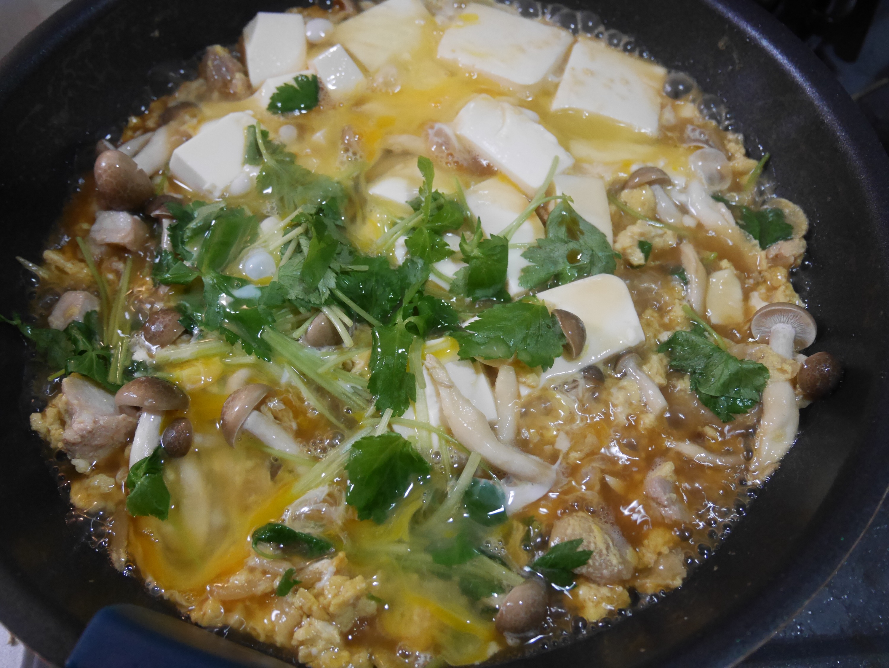 親子丼の残りをリメイク。鶏肉と豆腐のふんわり卵とじのレシピよなよな食堂〜毎日の簡単料理レシピ。