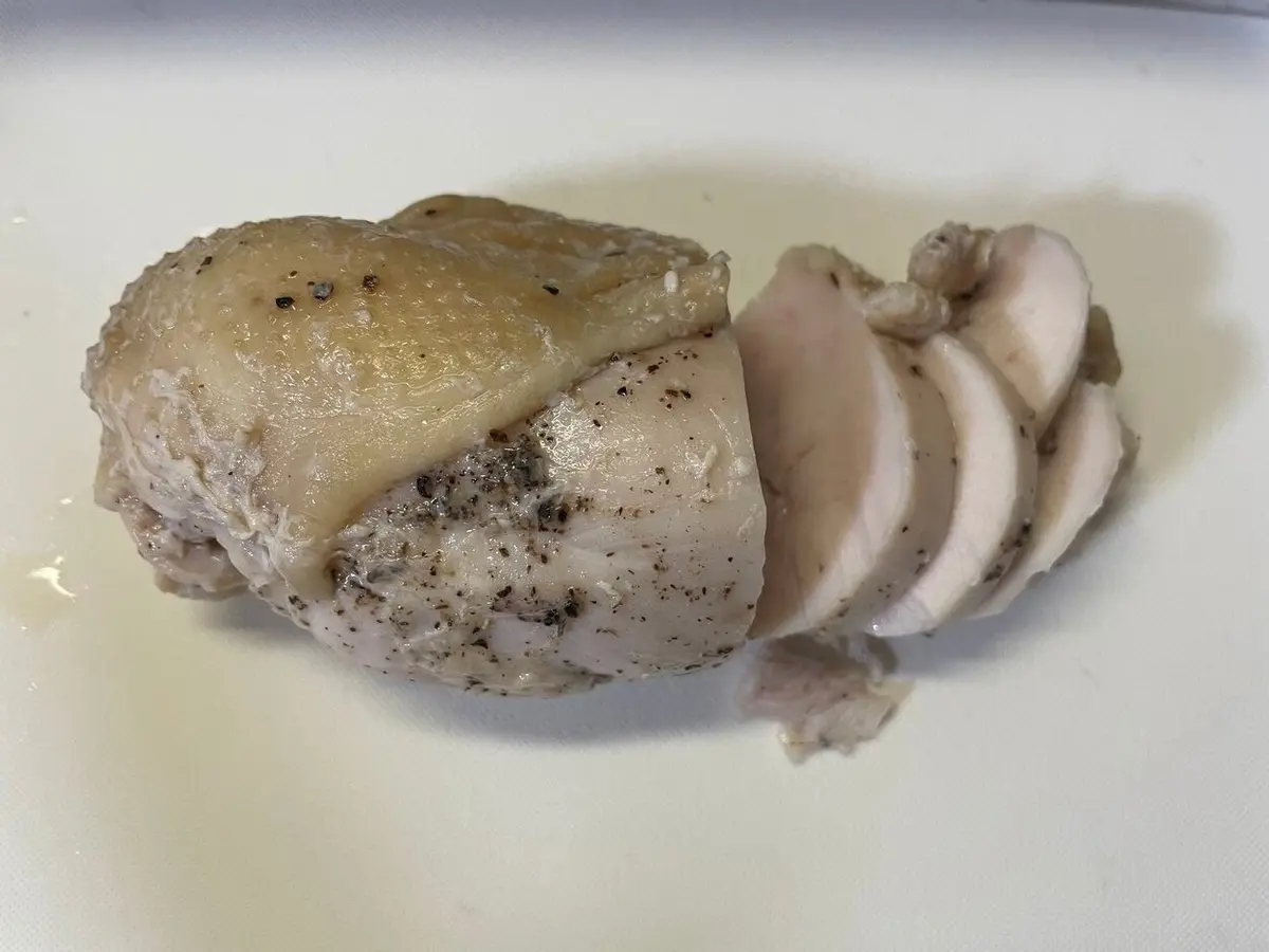 ホットクックレシピ『鶏むね肉で鶏ハム』低温調理器BONIQと作り比べ。いそがばまわれ。