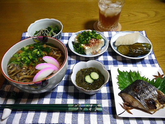 夕食 なめこ蕎麦・さわらの塩焼き・めかぶ酢: THE LAST SASURAI ~自炊ニストの食卓~。