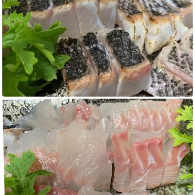 3日寝かせたメジナの刺身と炙りで今夜の晩酌です! 活のメジナを頂いたので、すぐに締めて寝かせてました 保存方法を変えて3日寝かせたメジナ は3日経っても瑞々しく旨味も出ていて最高です!この保存方法は簡単ですし魚もより美味しく食べれますね〜😊。