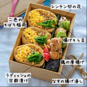 二色のそぼろ稲荷弁当”お花見弁当 Sakichi弁当 さきち弁当。