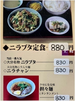 たびグルメ 大分市 王府 ニラ豚 じゃん。