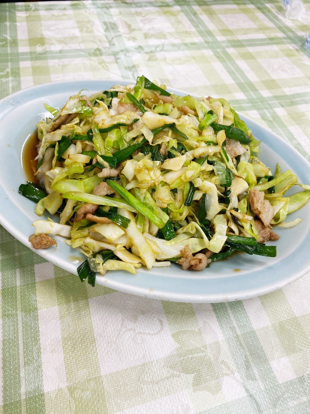 ワンフー, 大分名物『王府 ニラ豚』, これも一年越しの願い叶ったり🥳, 大分名物ニラ豚!, 焼きそばの後にニラ豚!しかも一人前凄い量😂,いやこれ食べれない!ところがどっこい!ほんのり甘めの味付けにシャキシャキの野菜🔥危うくお皿まで食べそうになるくらいペロリでした!,ニラの味が断然美味しいと思ったら、ワンフーさん自社の畑で栽培されてるそう!👏🏻,。