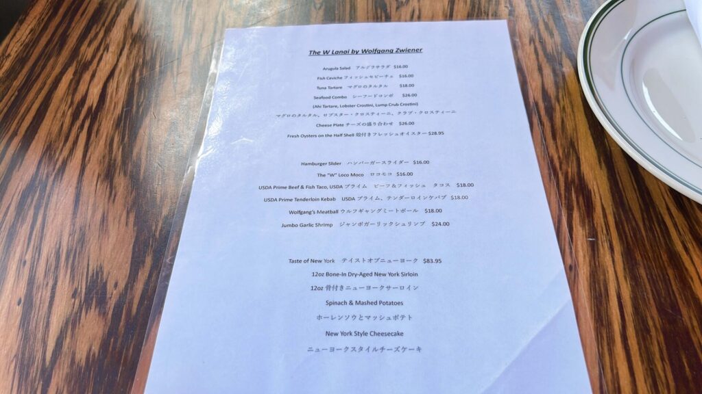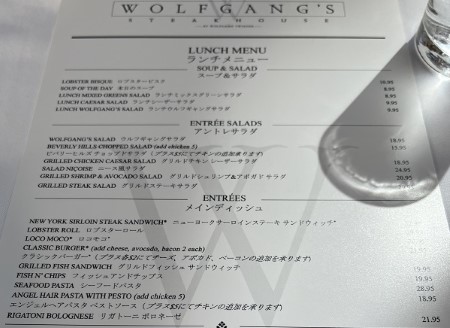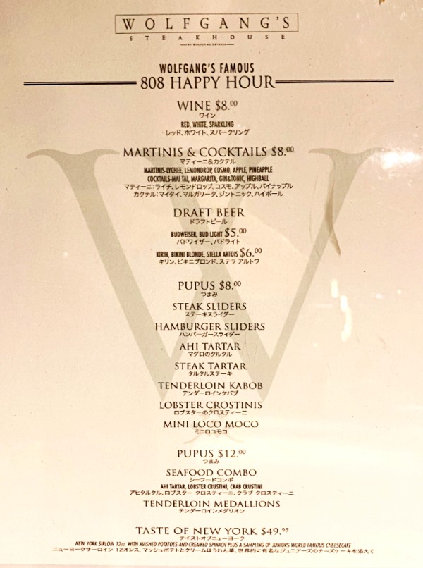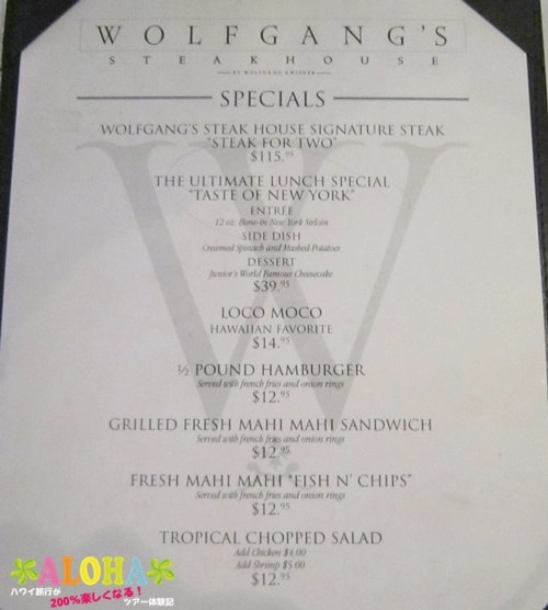 日本語メニュー・ワイキキ『ウルフギャング』ステーキの安いランチ ディナー&朝食メニューもあります。タミー ハワイTammy Hawaii。