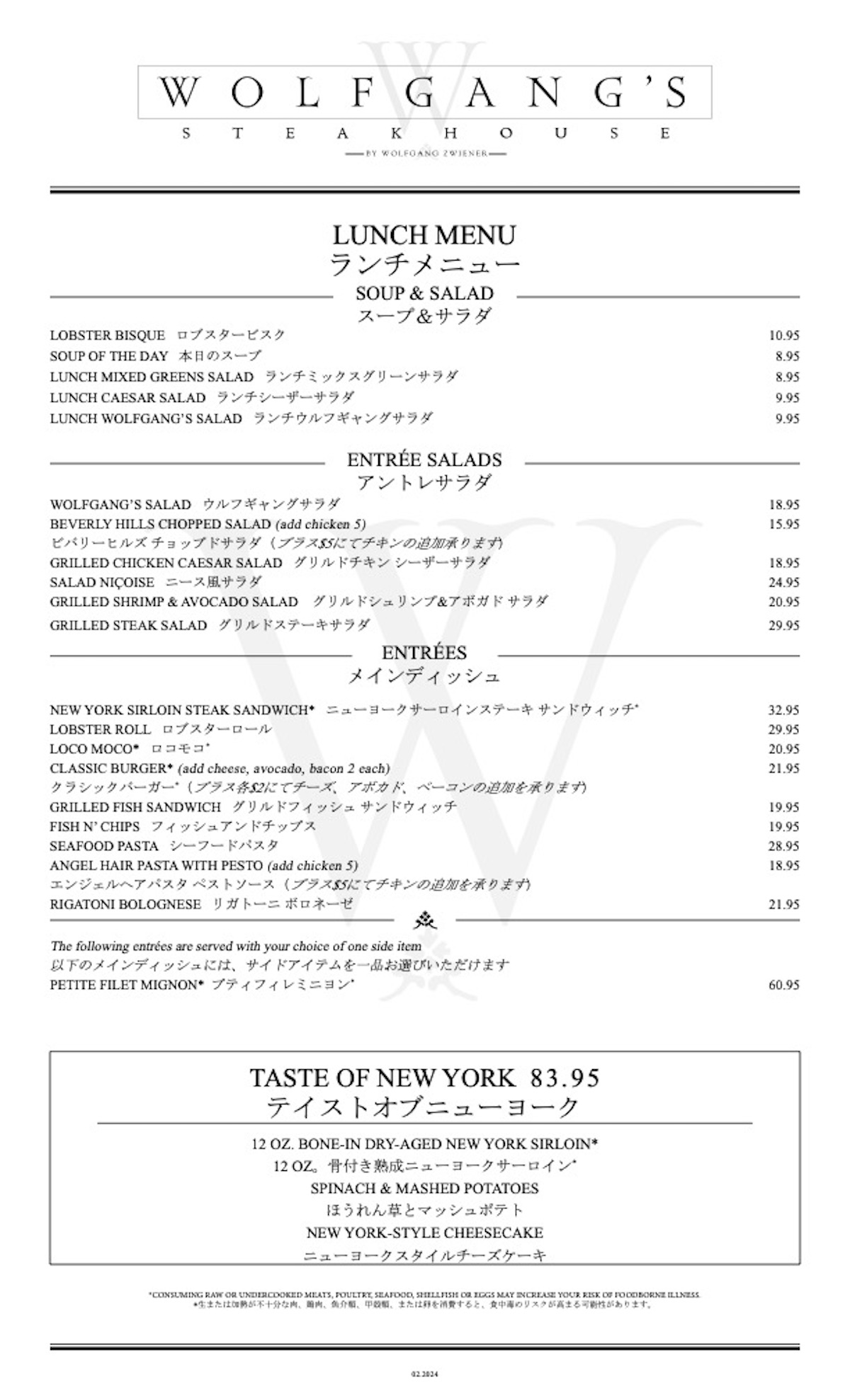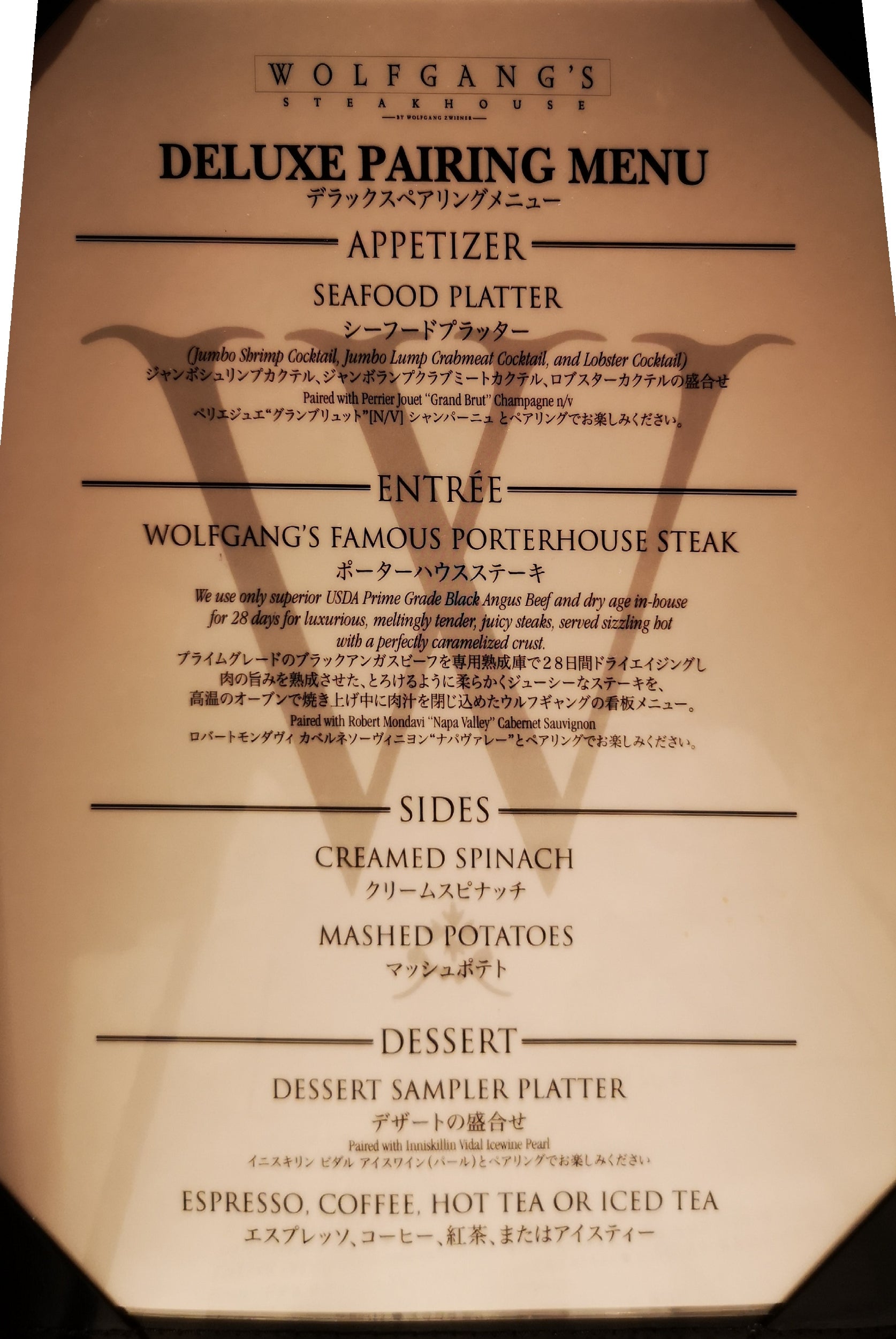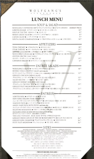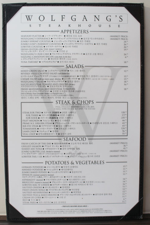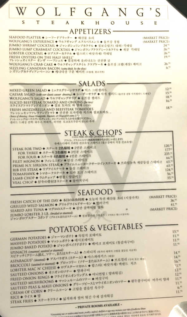 MENUWolfgang's Steakhouse ウルフギャング・ステーキハウス - Official Website。
