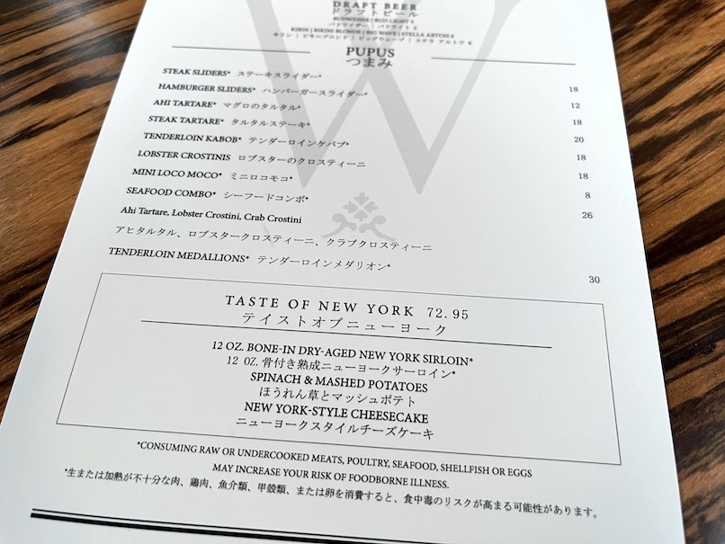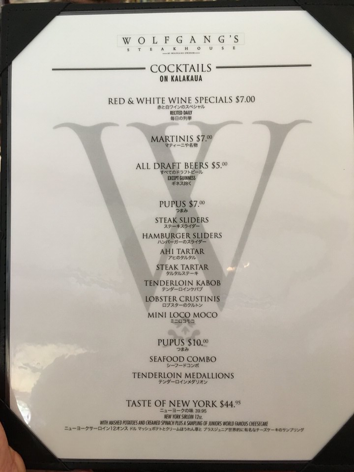 ウルフギャング ハワイのハッピーアワーに潜入!時間とメニュー、値段をブログでレポート!陸マイラー ピピノブのANAのマイルで旅ブログ。