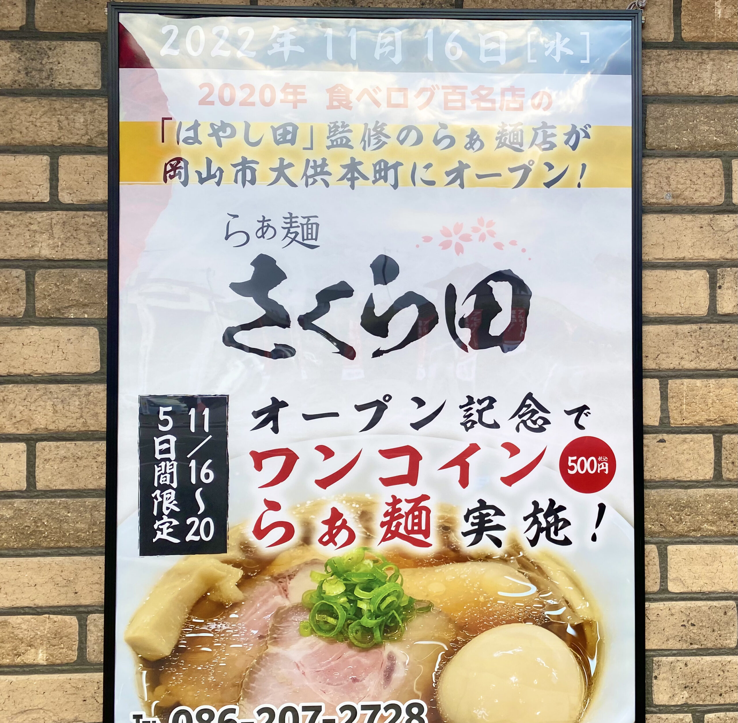 岡山市北区 あれっ、いつオープン? 「らぁ麺さくら田」がオープンしていると思い、行ってみましたが・号外NET 岡山市。