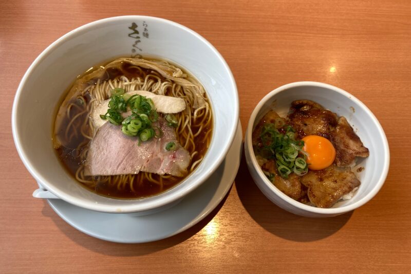 岡山大供『らぁ麺さくら田』はやし田監修の醤油ラーメンと豚丼ランチ。