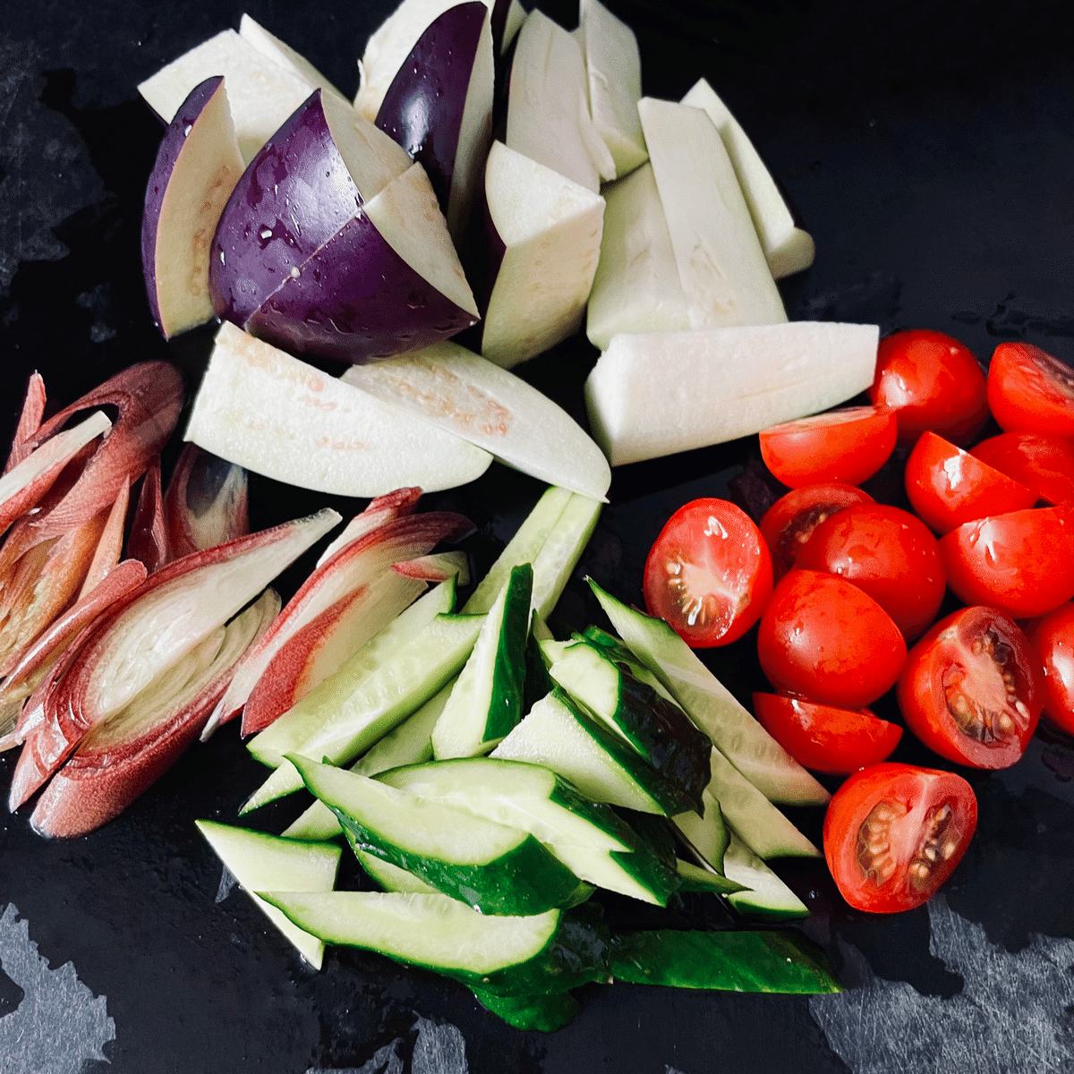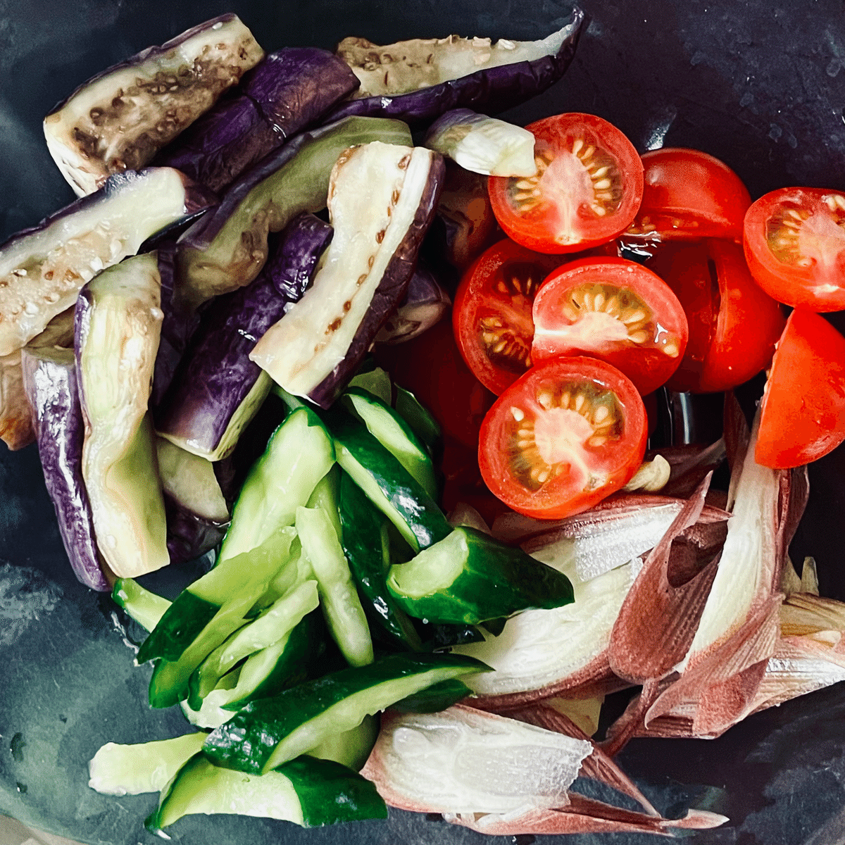 ナスとキュウリとトマトと春雨の中華風サラダ ごちそうサラダになりました。くにこキッチン♡からだにやさしい、おいしいごはん。