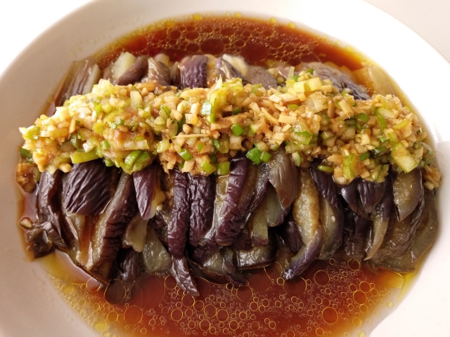 とろとろ秋なすの中華風梅ポン酢ソース。