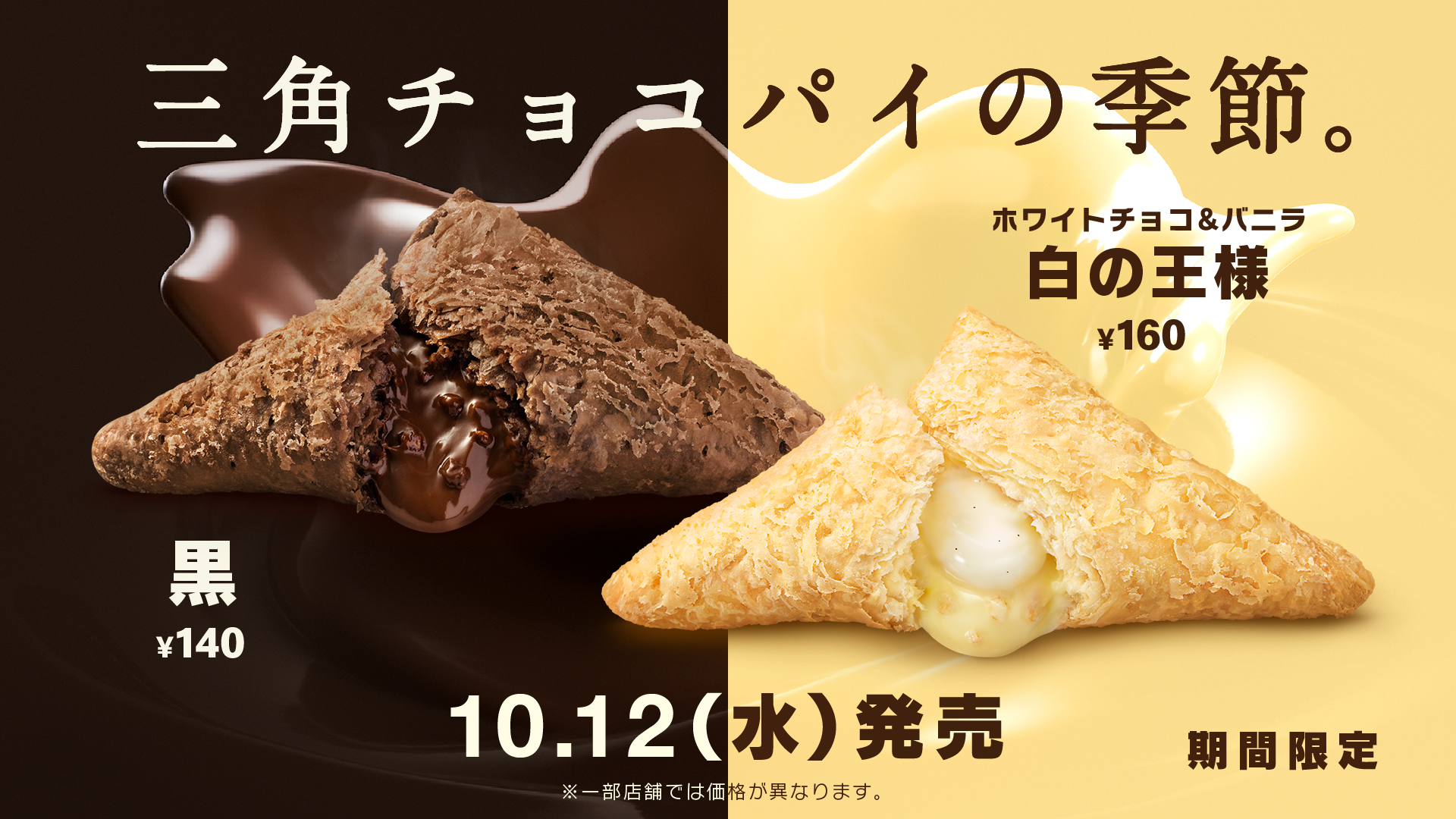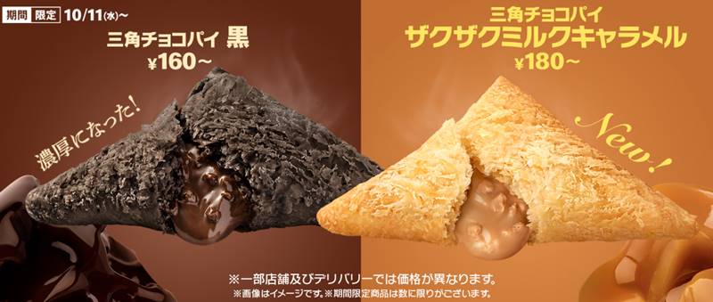 10 11 水 から期間限定で登場!今年も「三角チョコパイ」が味わえる!定番の「黒」と新作「ザクザクミルクキャラメル」お知らせ日本 マクドナルドフランチャイジー タビーコーポレーション株式会社。