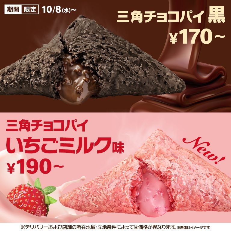 秋冬の定番「三角チョコパイ 黒」が10 8 水 から期間限定で登場!新作「三角チョコパイ いちごミルク味」も!マクドナルド公式。