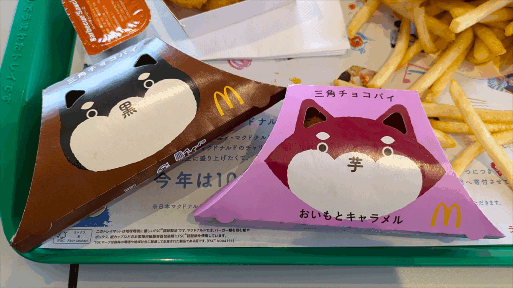 マクドナルド 2024年三角チョコパイ〜三角チョコパイ黒・三角チョコパイおいもとキャラメルりぜし。