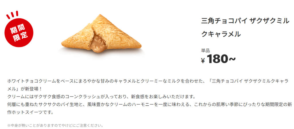 マクドナルド「三角チョコパイ」の季節到来! 新作「おいもとキャラメル」、定番「黒」発売 - グルメ Watch。