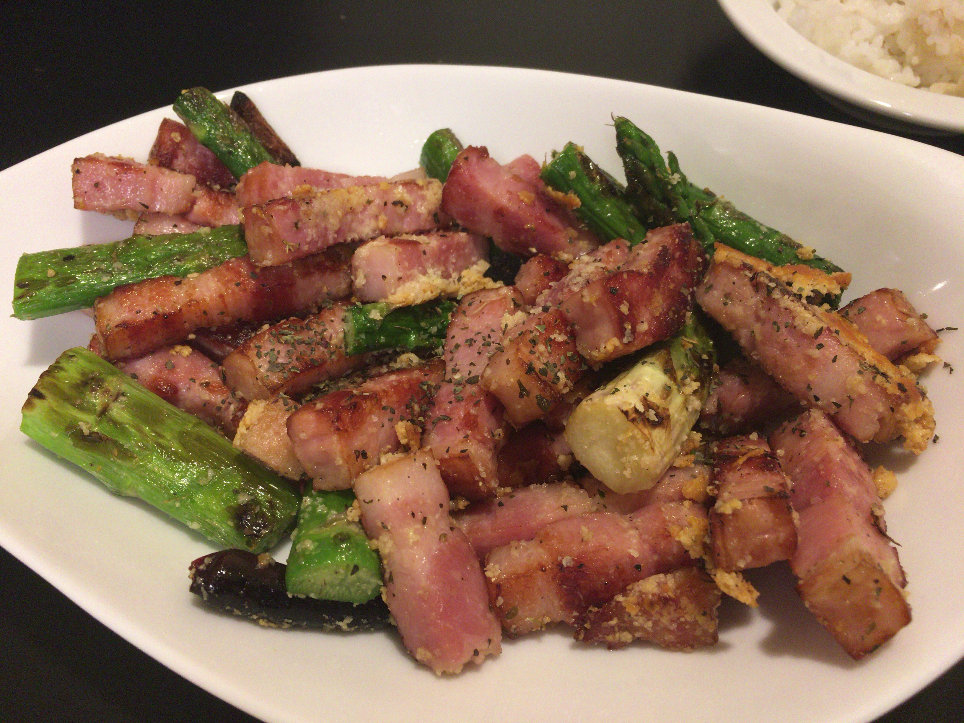 ブロックベーコンを使った巻かないアスパラベーコン。