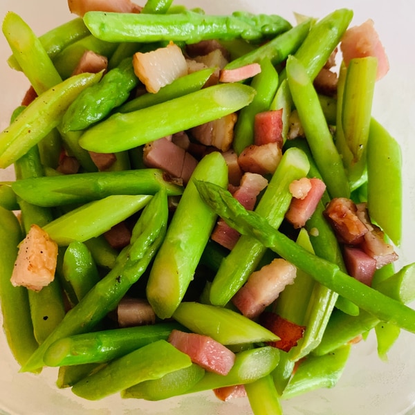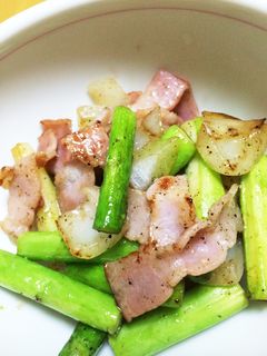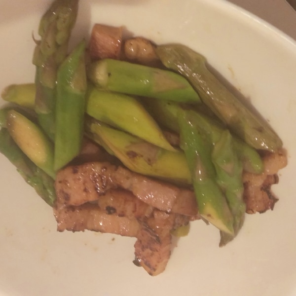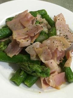 減塩めんつゆで作る★巻かないアスパラベーコン。