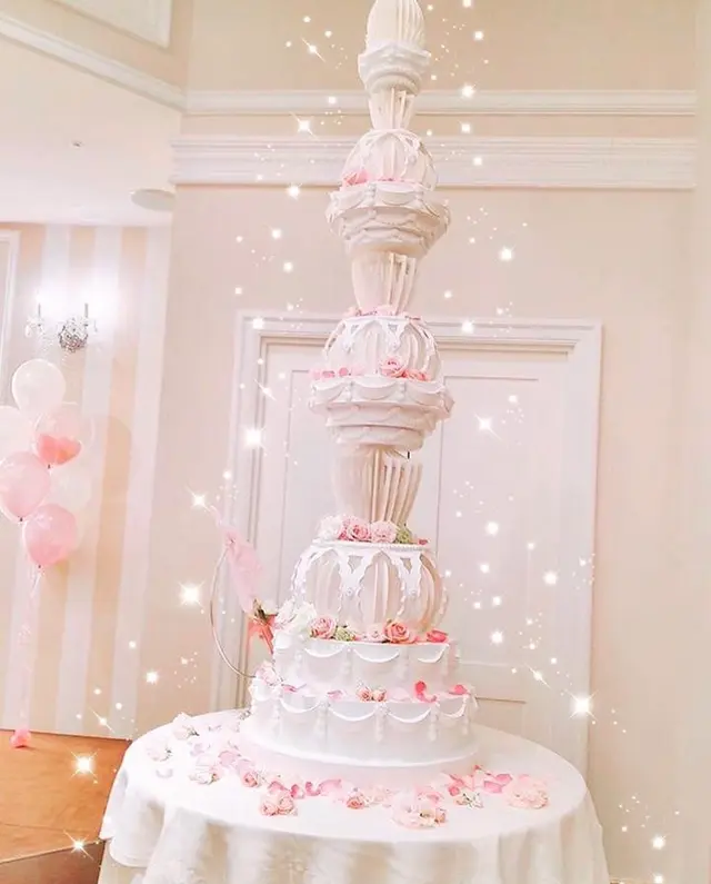 ホテル婚花嫁必見 今高さのあるイミテーションケーキが大注目!先輩花嫁の実例8選お見せします♡。