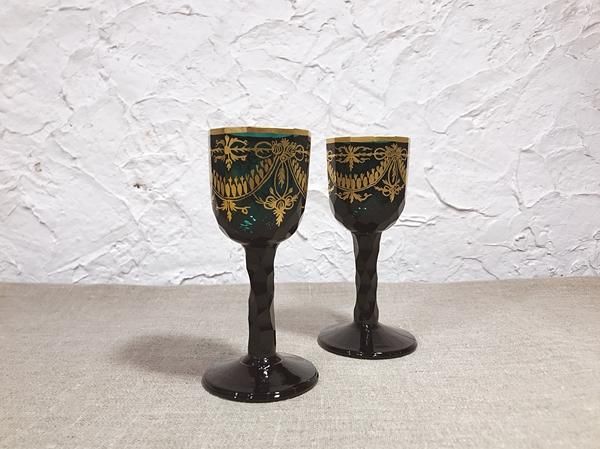 大正、昭和レトロ 、ブランデーグラス・ワイングラス、セミアンティーク 希少 楽天市場 ワイングラス ペアセット 80ml 大正浪漫廣田硝子 TR-34BK-12 デザートワイン カクテル レトロ : ANNON キッチン・業務用食器。