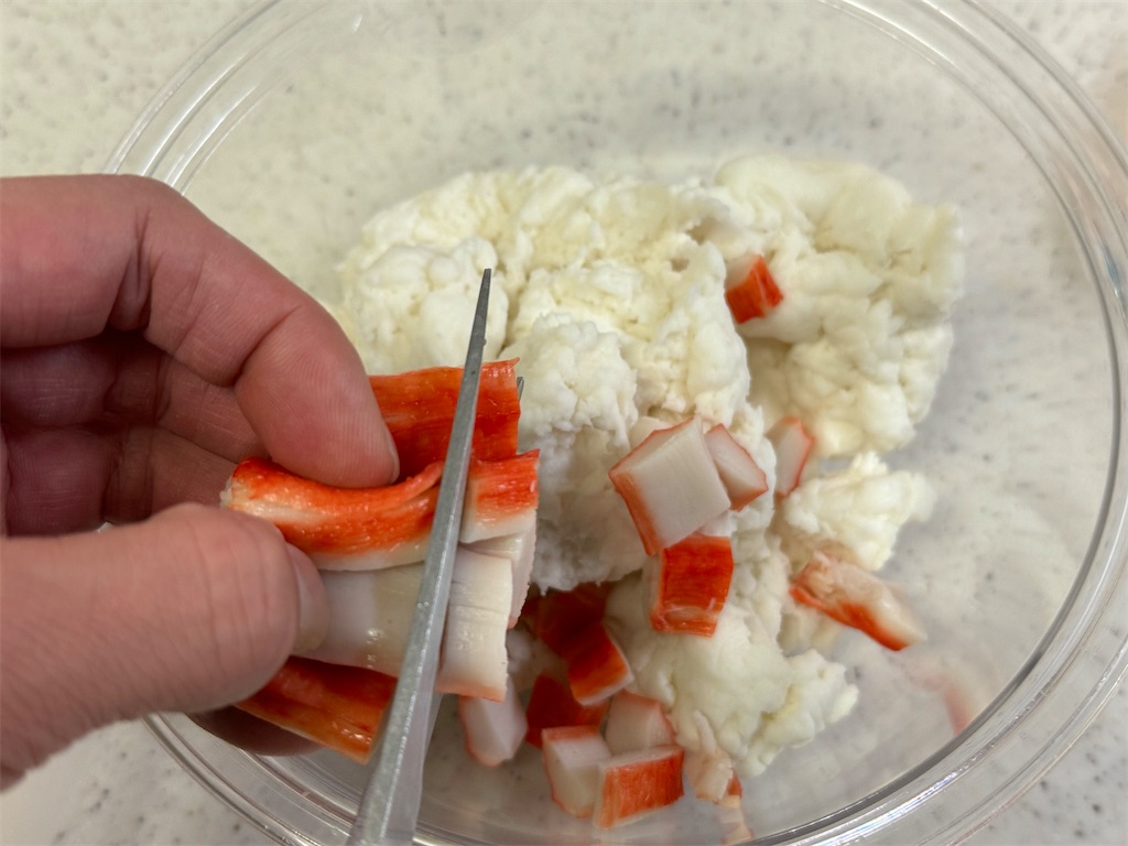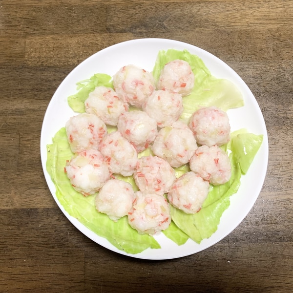 \包丁まな板不要 ワンパン10分 カニカマはんぺんボール。