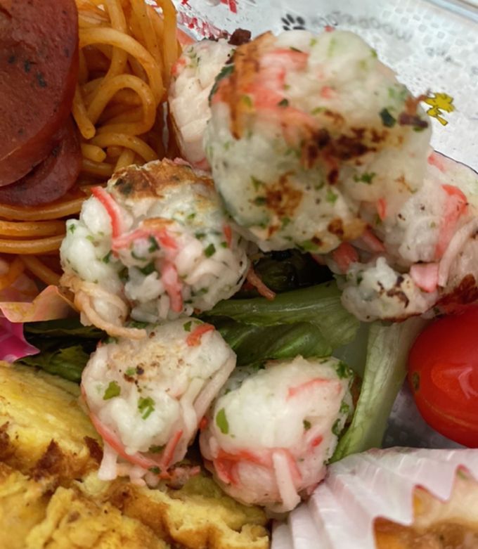 お弁当おかず 簡単かわいい♡はんぺんとカニカマのまんまる焼き obento。