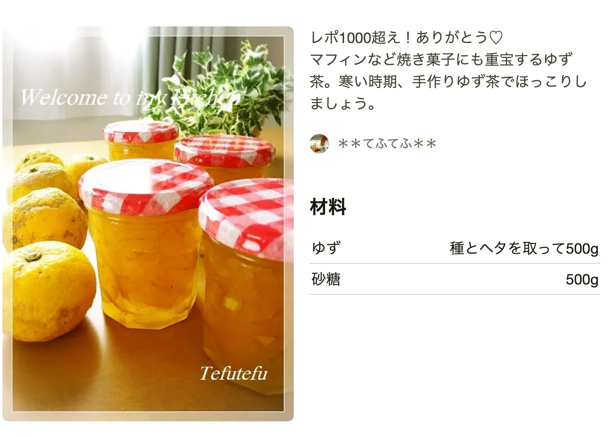 人気1位 ゆず茶殿堂入りレシピBEST10 つくれぽ1000超え つくれぽ1000並の人気レシピ集。