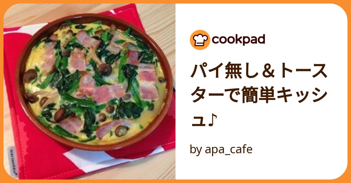 パイ無し&トースターで簡単キッシュ♪ by apa_cafeクックパッド簡単おいしいみんなのレシピが392万品。