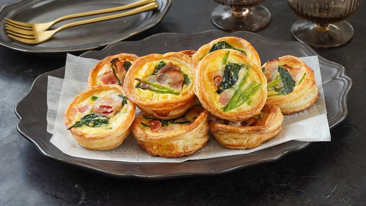 ミニキッシュの作り方冷凍パイシートで簡単!ほうれん草とベーコンのお手軽キッシュ!サクサクで美味しい!小腹が空いた時のおやつに!-How tomake Mini Quiche- 料理研究家ゆかり。