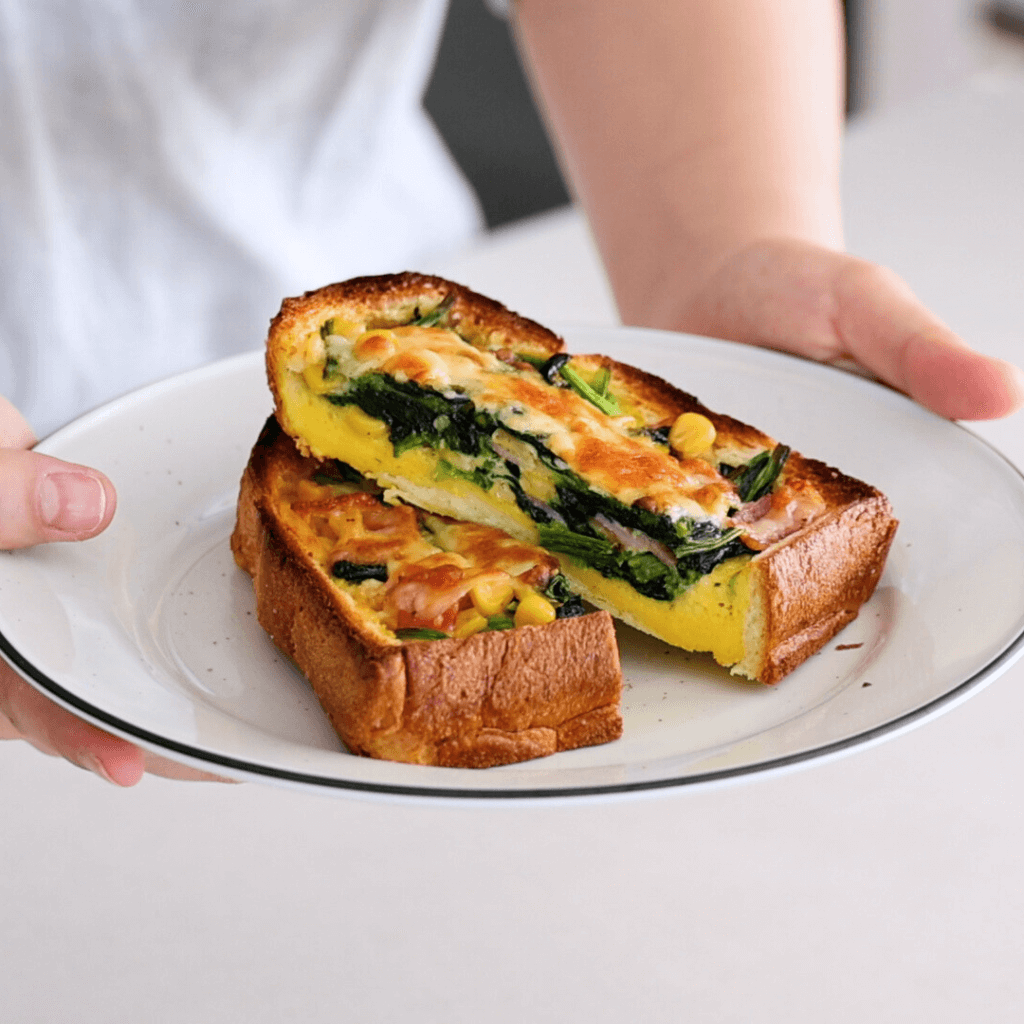 一皿でカフェ気分◎ほうれん草とベーコンのキッシュトースト - れこれしぴ。