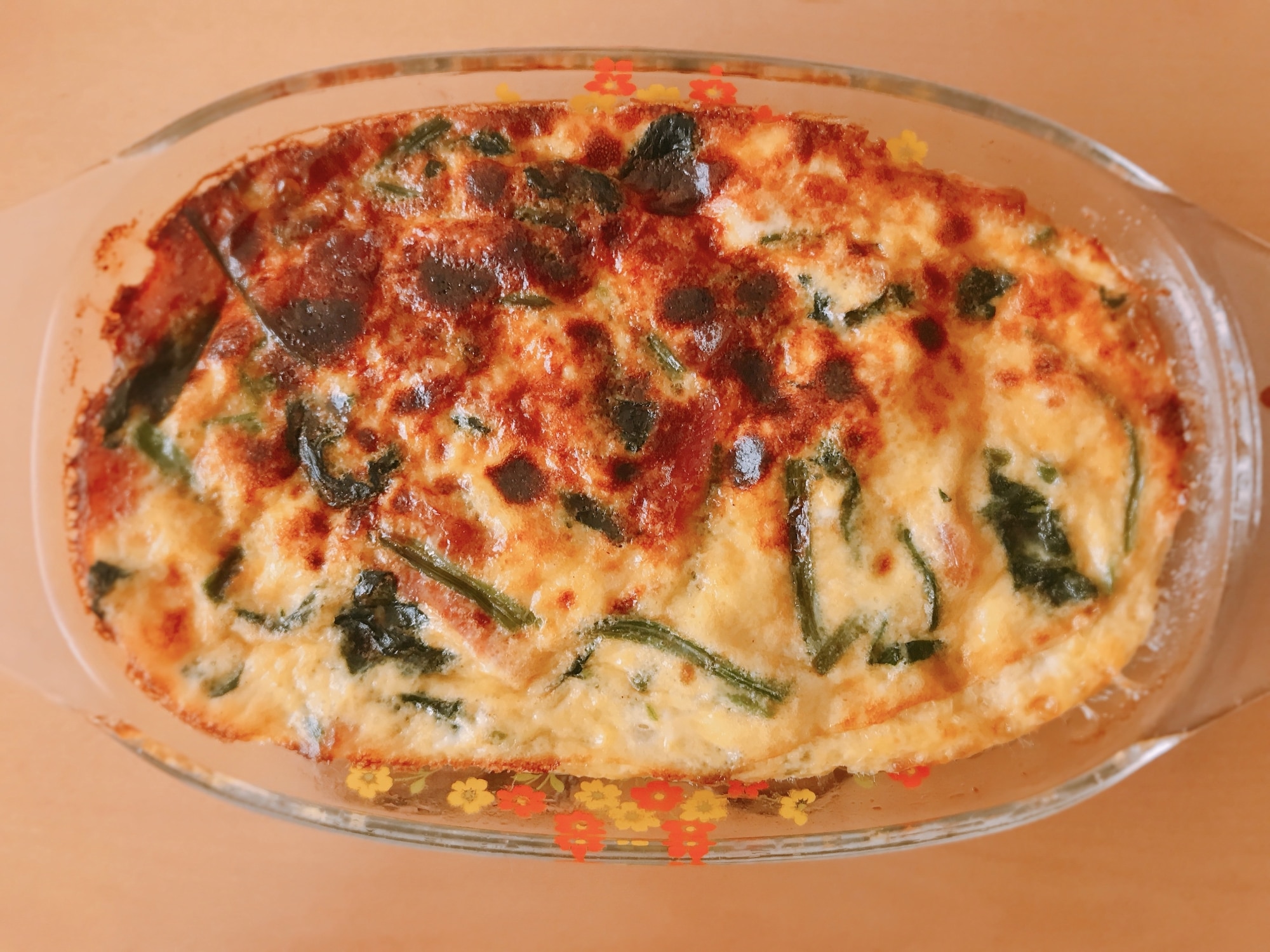 簡単!ほうれん草とベーコンのパイなしキッシュ☺。