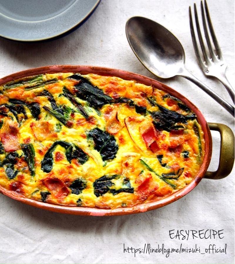ほうれん草と卵の絶品おかず レンジで簡単!ほうれん草とベーコンのキッシュレシピ・作り方Tasty。