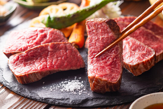 皿に盛り付けた黒毛和牛ヒレステーキの写真素材66433060- PIXTA。