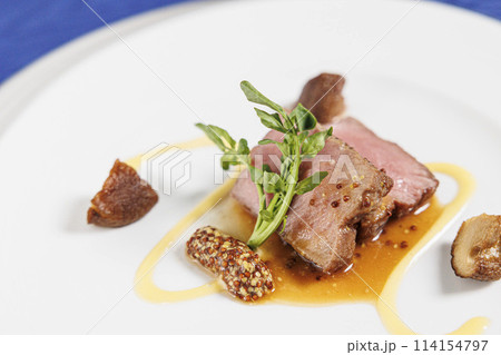 フレンチコースのメインビーフステーキ おしゃれな盛り付けの素材画像の写真素材114154797- PIXTA。