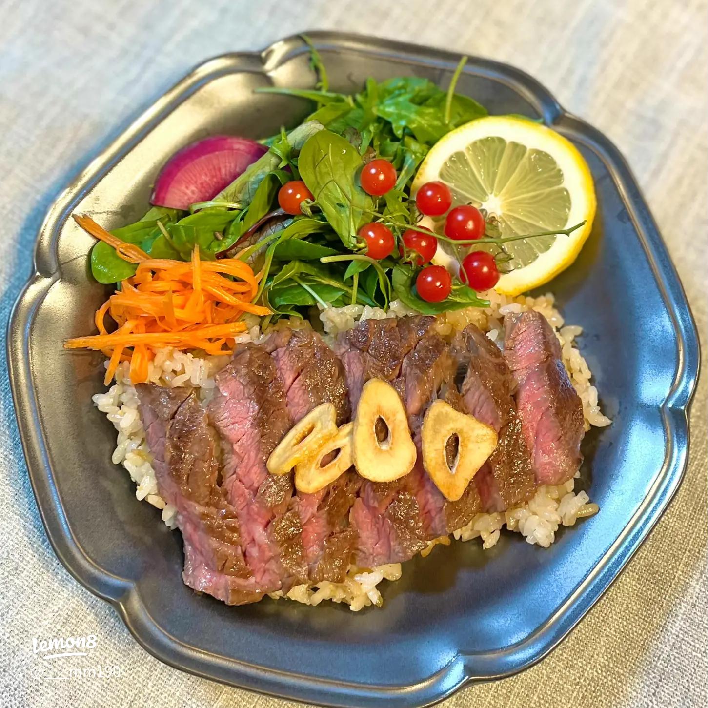 盛り付け例 29まるごとステーキ丼 プレーンステーキマン食べて埼玉。