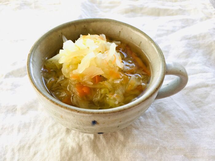 優しい甘み♡『キャベツと人参のコンソメスープ』。