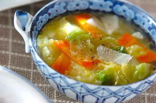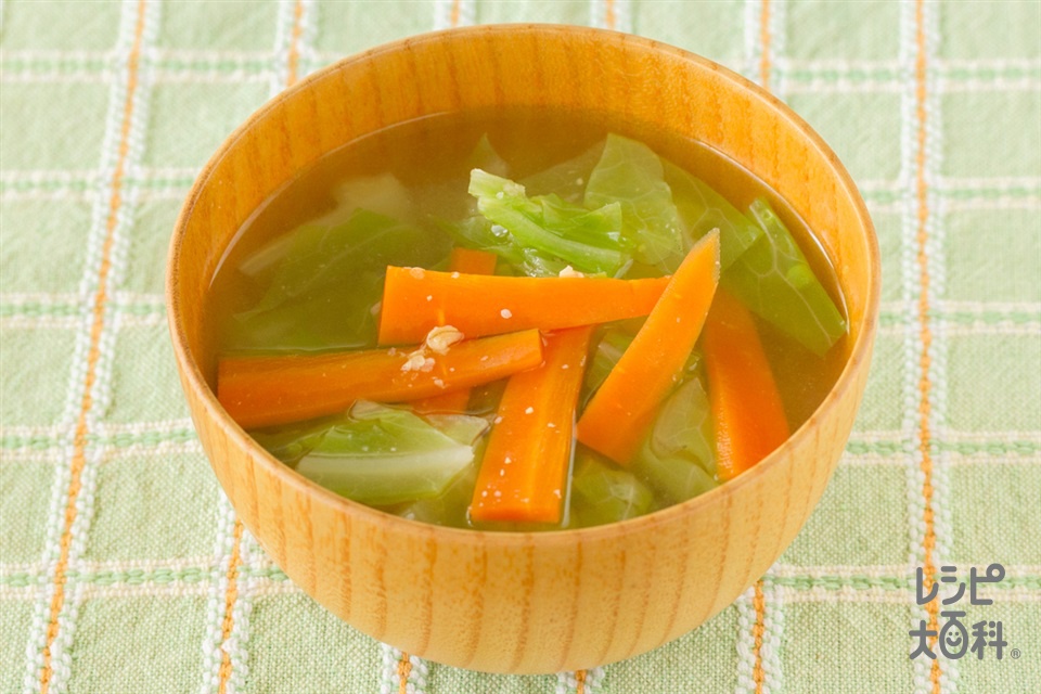 キャベツとにんじんのコンソメスープのレシピ・作り方 簡単&時短- レタスクラブ。