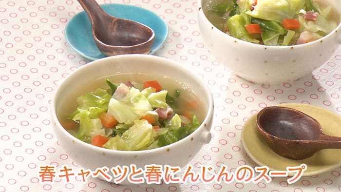 きょうの料理ビギナーズ 「春キャベツと春にんじんのスープ」の作り方春キャベツのレシピ知っ得レシピ。