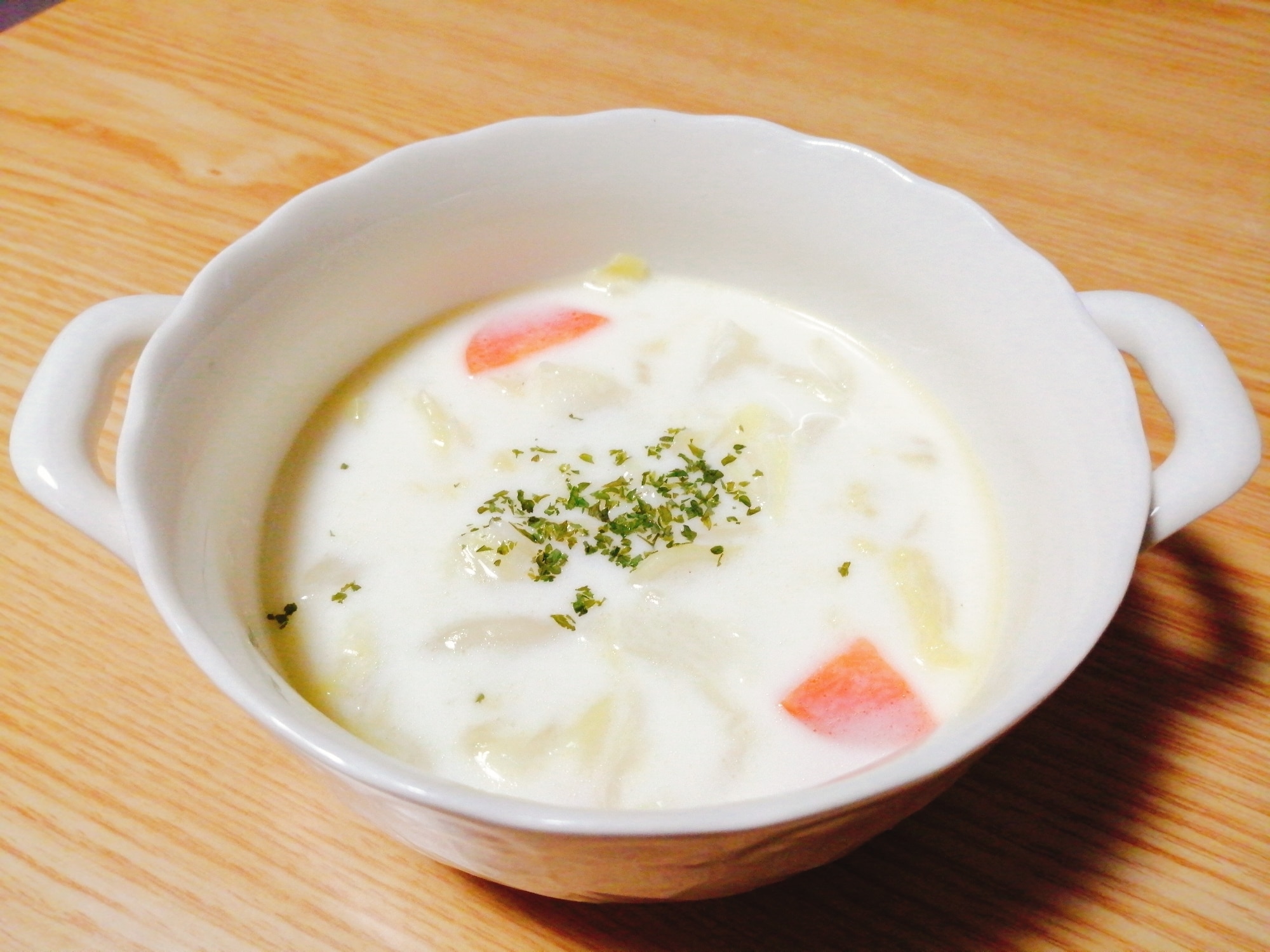 キャベツとにんじんの旨とろ白湯スープ 1 2日分の野菜使用うちのごはん使用。