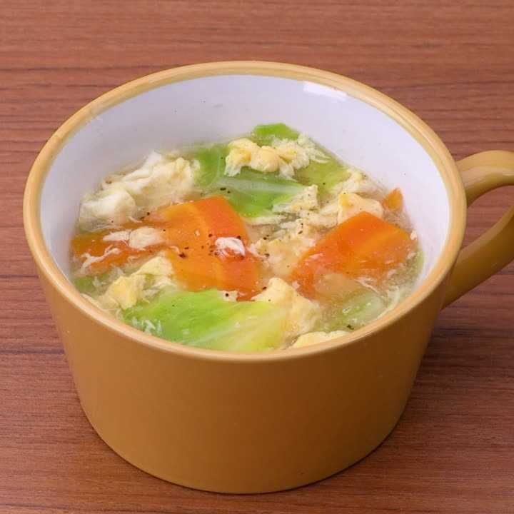 パパッとできる♪ キャベツとにんじんの中華卵スープ。