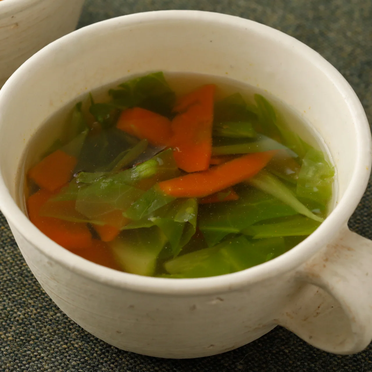 キャベツ、人参、かぼちゃのコンソメスープ。